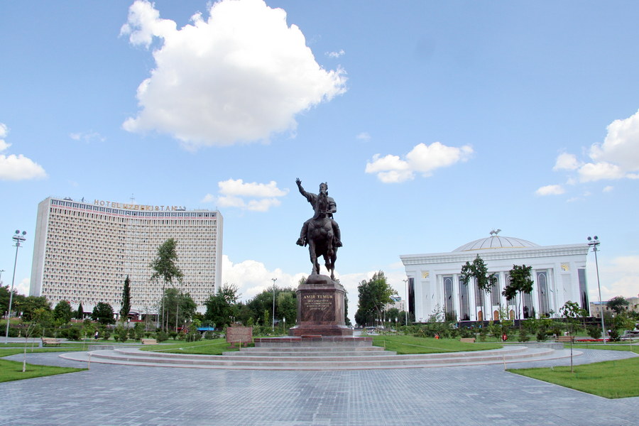 - Площадь Амира Тимура. Сквер с конным монументом Тамерлану.